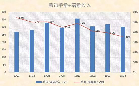 腾讯手游+端游收入 制图 / 燃财经