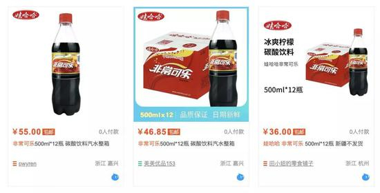 北京商报记者注意到,目前非常可乐在一线城市已基本见不到身影,而在线上电商平台上,卖家也比较少。在淘宝平台,非常可乐的卖家较多,出售的以瓶装500ml装产品为主。但售价差距很大,12瓶装每箱价格从27.8元到55元不等,发货地包括成都、嘉兴和上海。
