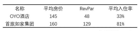 此外从平均房价、平均入住率、RevPar(Revenue Per Available Room 可售房收入)来看,OYO 酒店的盈利能力不及传统酒店。