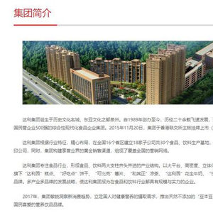其官网介绍说:达利集团专注食品行业,形成食品、饮料两大支柱齐头并进的产业结构。以大平台、高密度、立体化的品牌推广模式,提升品牌形象,旗下“达利园”糕点、“好吃点”饼干、“可比克”薯片、“和其正”凉茶、“达利园”花生牛奶、“乐虎”功能饮料,已成为各行业知名品牌。多产业多品牌的发展战略,使达利集团成为在食品和饮料行业都具有规模与实力的企业。