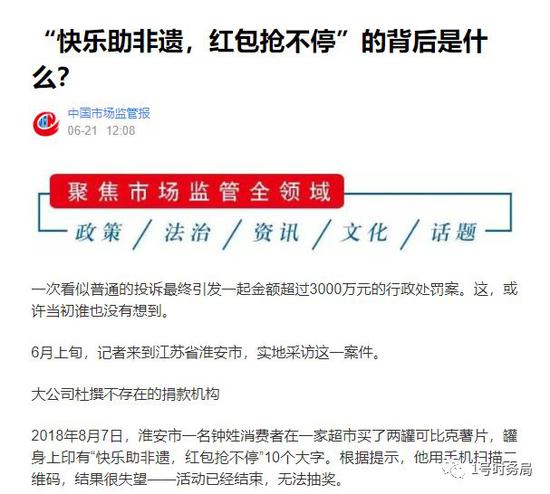 事情还要从2018年8月7日说起。当天,淮安市一名钟姓消费者在一家超市买了两罐可比克薯片,罐身上印有“快乐助非遗,红包抢不停”10个大字。根据提示,他用手机扫描二维码,结果很失望——活动已经结束,无法抽奖。