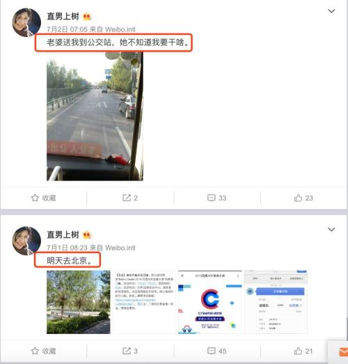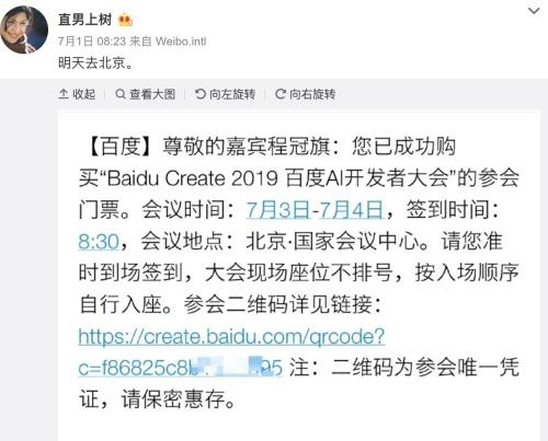 很快,这个人的微博被扒出,翻看这位网友叫“直男上树”的微博,能看到他为了泼李彦宏蓄谋已久,自费买了门票和火车票从山西运城来到北京,昨天早上他发微博说:“老婆送我到公交站,她不知道我要干啥。”