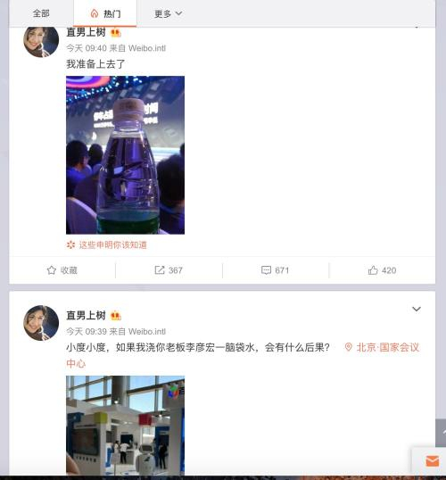 随后就有了李彦宏被当头浇水的那一幕。