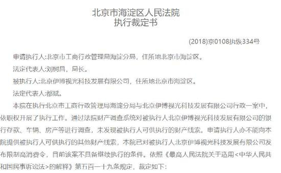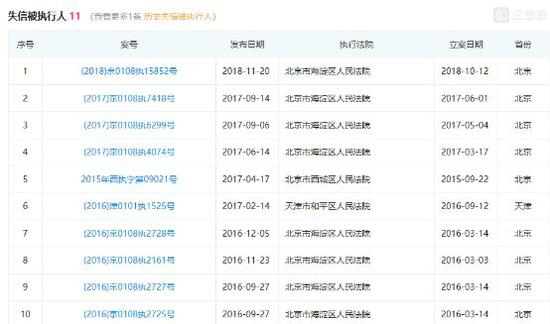 此外,伊博公司还11次被北京市海淀区人民法院列为“失信被执行人”,时间从2016年3月14日至2018年10月12日。