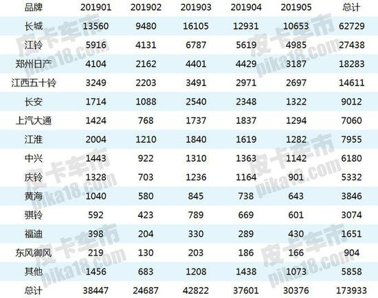 ▲2019年1-5月份国内皮卡销量排行