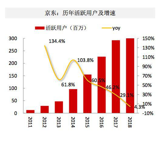 京东历年活跃用户及增速