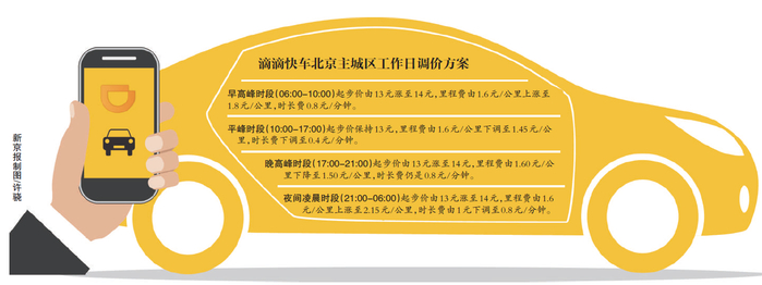 早晚高峰滴滴快车起步价由13元涨至14元;滴滴称高峰期呼叫增加49%