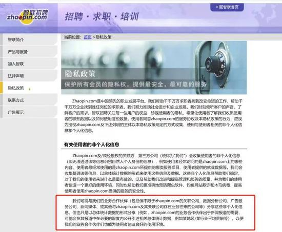 收集的求职者的个人信息,可能与数据分析公司、广告服务公司等业务合作伙伴分享;