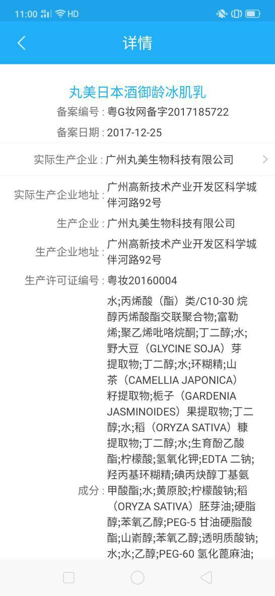 再进一步查询两者的生产企业,进口产品生产企业为“丸美化妆品株式会社”,国产品生产企业为“广州丸美生物科技有限公司”。