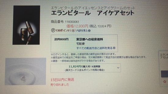 从丸美日本官网点击购买产品,链接指向的是乐天购物网。点击某些产品后获得的信息是缺货,补货时间需要15天。