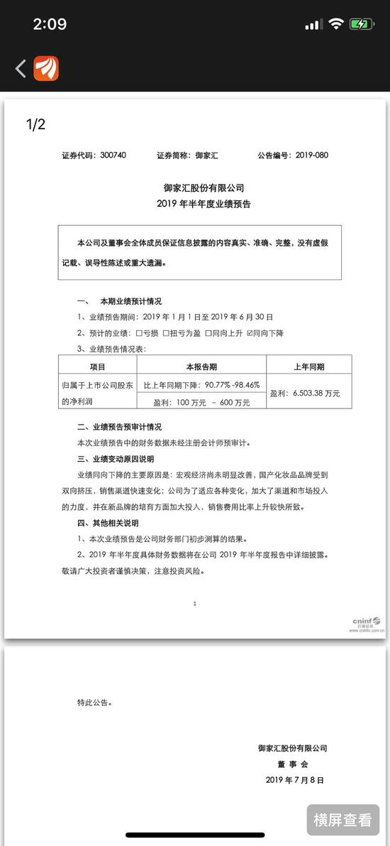 御家汇上半年净利预降九成 “面膜电商第一股”业绩失色