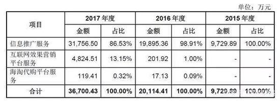 这些收入主要来自销售佣金和广告。招股书显示,2016年-2018年,信息推广服务收入在“什么值得买”收入中的占比分别为98.91%、86.53%、80.22%,呈递减趋势,但仍是主要营收来源,互联网效果营销平台服务占比逐渐上升,分别为1.00%、13.15%、19.64%。