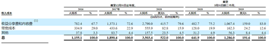 斗鱼营业成本构成(数据来源:斗鱼招股说明书)