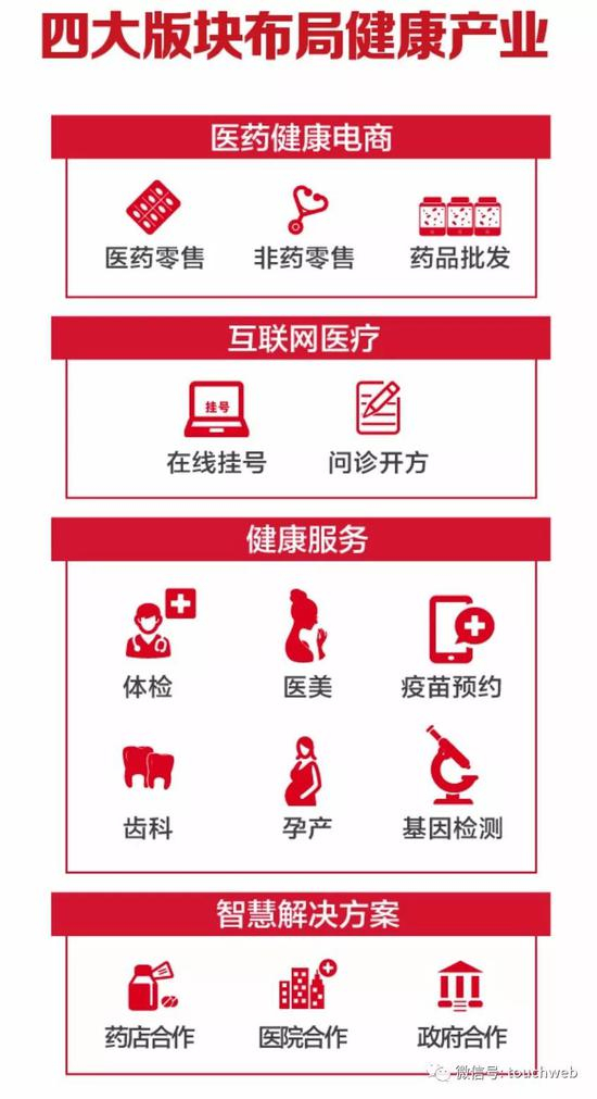 据介绍,依托京东的资源优势,京东健康在目前医药健康电商、互联网医疗、健康服务、智慧解决方案四个业务版块基础上,逐步完善其“互联网+医疗健康”的产业布局。