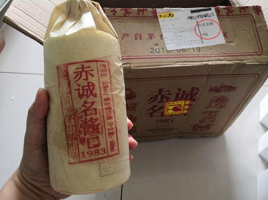 “免费送酒”现象在网上存在已久,为了解其实情,新京报记者最近按照推送广告提示,“免费领取”了一箱标称贵州省怀仁市民族酒业有限公司生产的“赤诚名酱1983”53度白酒,同样被收取198元“配送费”。