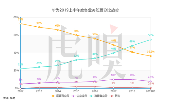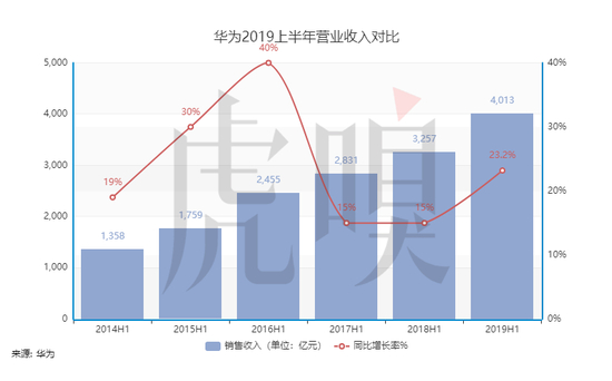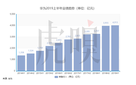 从整体趋势上来看,华为的2019上半年表现是“稳步增长”的。