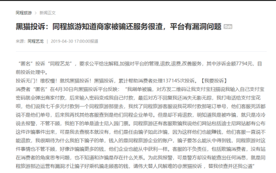 多人称在同程旅游遇诈骗 回应:刷单被盗与我们无关