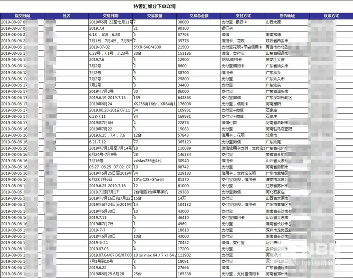 和李明奇情况类似的还有本身就是经营手机专卖店的王志(化名),而他在特奢汇上下单商品的金额达到了54万元。