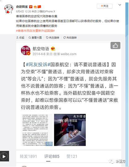 有些人在网上讲了他们的故事,在乘坐国泰航班时,说英语的和说粤语的是座上宾,但只要是说了普通话,就往往只能得到赤裸裸的低质服务。 这些故事下面的评论里,很多人都有共鸣。看来这并不能归咎于当天空乘服务不好,当事乘客倒霉,而是一种普遍现象。