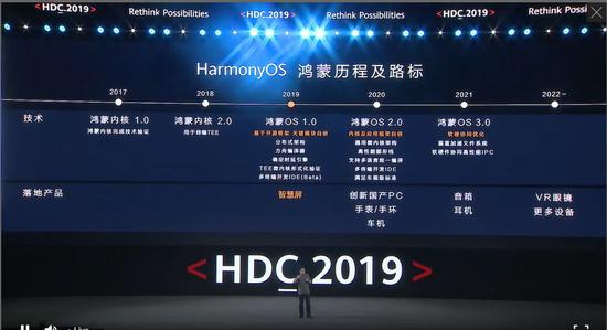 最后,余承东还介绍了鸿蒙OS的演进路线。华为将在明天首发的智慧屏产品中率先使用鸿蒙OS 1.0。未来三年,除完善相关技术外,鸿蒙OS会逐步应用在可穿戴、智慧屏、车机等更多智能设备中。