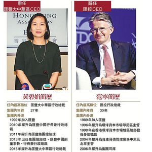 黄碧娟加入汇丰27年,与范宁一样是集团内少有资历深厚的老臣子之一。黄碧娟在汇控曾历任银团贷款部,资本市场部,大中华地区债务发行以及环球银行部,最为人熟悉的是2010年起派驻上海做“开荒牛”出掌汇丰中国行长兼行政总裁,2015年年擢升为汇丰大中华区行政总裁,负责管理中国内地,香港,澳门和台湾的业务。