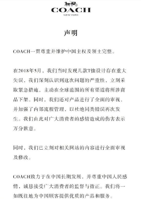 ▲截图来源:微博 8月12日,品牌蔻驰在其官方微博发布致歉声明,称已采取紧急措施,主动在全球范围的所有渠道将所涉商品下架,并已对相关网站的内容进行全面审视及修改。