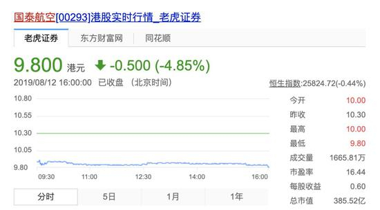 负面新闻缠身,也让国泰航空股价大跌、经营承压。截至8月12日收盘,国泰航空跌4.85%,创下近年来新低。