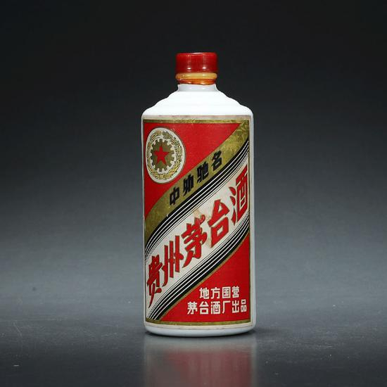 说明:三大革命茅台酒是从1967年下半年开始生产,一直到1982年结束。它的容量为540毫升,出厂时外面有一层棉质包裹,没有外盒。盖子是圆形红色的塑料材质的螺旋盖,在20世纪70年代末到80年代初期,还出现过另外一种八角形状的盖子。