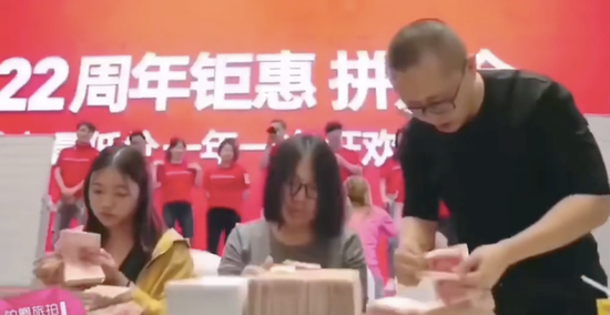而这场收取了培训费的“培训会”最终演变成了“内购会”,该员工称,公司称亲属朋友可以打折,其实是让员工拿亲友单为其刷业绩。“内购是强制执行,每人都要拉到指定目标,否则每人再重罚300-500元工资卡,包括网销、剪辑、前期摄影、化妆、后期数码师、网管,甚至保安都要参加。”