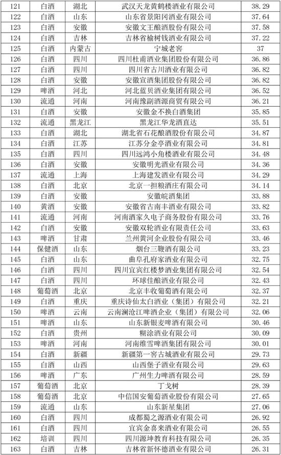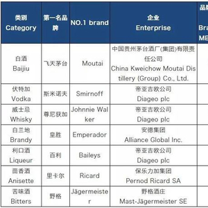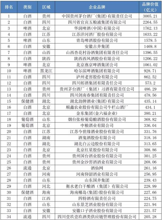 中国酒企品牌价值200强:茅台五粮液华润啤酒居前三