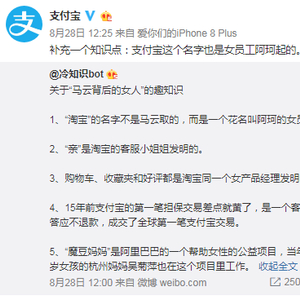 2019全球女性创业大会上,马云关于女性话题的演讲引发关注,有网友总结了关于“马云背后的女人”的几条趣知识,经过支付宝官方转发盖戳,真实性还是可考证的。