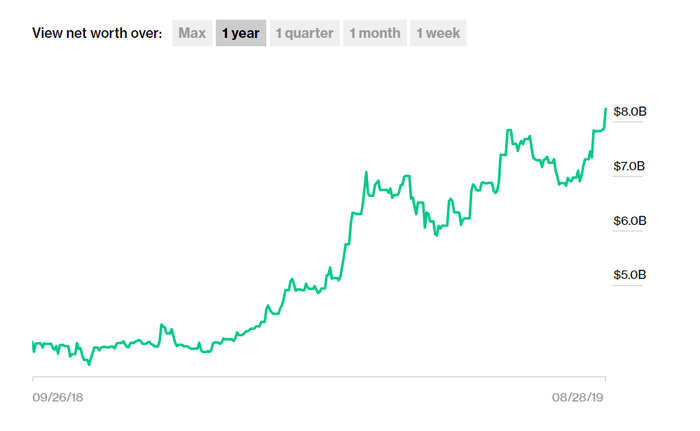 张勇过去一年净身价涨幅趋势图表 来源:彭博新闻社