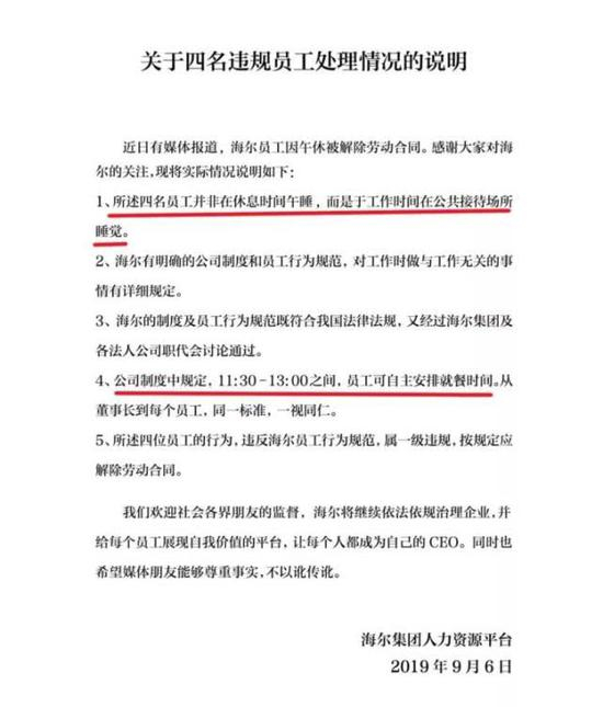 对此,海尔集团公关部和HR部门反应倒是十分迅速,给出了如下说法: