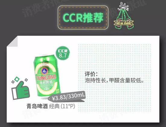 5、推荐品质较优的青岛啤酒,不推荐甲醛含量较高的重庆啤酒。
