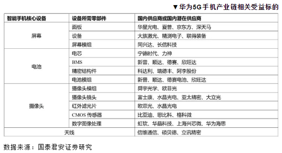 记者查阅汇总,在手机产业链上,华为的A股“小伙伴”包括比亚迪、汇顶科技、深南电路、沪电股份、京东方A、立讯精密等。