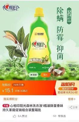 9月23日,北京商报记者发现,在心相印天猫旗舰店中,悄然上线了除螨防霉洗衣类产品。目前,心相印上线的洗衣类产品主要分为洗衣液和洗衣凝珠两种产品。
