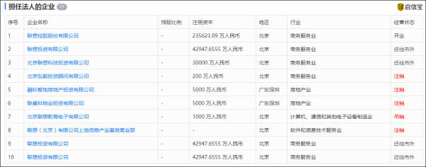 柳传志卸任联想(天津)法人 名下大部分企业注销