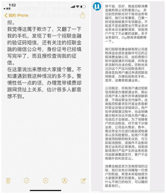 联通优惠套餐暗藏“招联金融”网贷 违约或影响个人征信