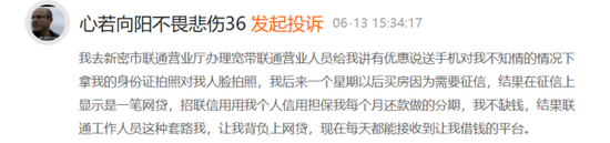黑猫投诉上,郑州网友@心若向阳不畏悲伤36 在6月13日发起投诉: