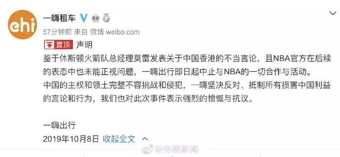 肖华声明中文译文中国企业全面暂停与NBA合作截至10月8日,NBA中国官网上列出的25个NBA官方合作伙伴中,有11家中国品牌已经公开宣布中止或暂停与NBA的合作,它们分别是安踏、长虹、携程、德克士、一嗨、康师傅、美菱、蒙牛、咪咕、吾尊、小赢科技。这几乎已经是NBA中国官网上列出的中国品牌的全部。另外两家尚未公开发声的有中资背景的品牌,均系中外合资企业。