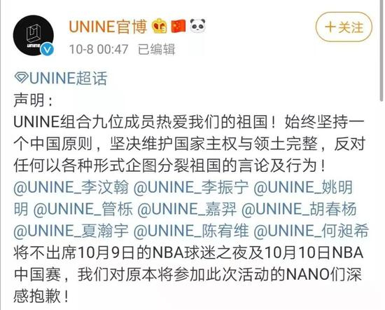众多艺人表态,终止与NBA的合作或不会出席NBA中国活动。