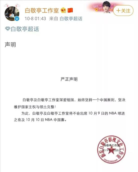 在对火箭队总经理莫雷的行为强烈抗议和谴责的同时,停止官方发布其本人的任何新闻,并删除以往莫雷相关的所有新闻。