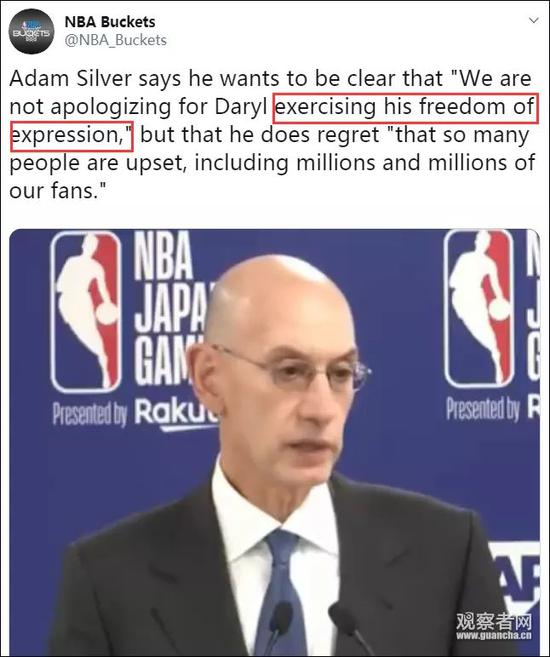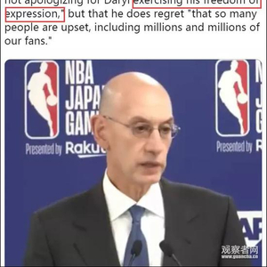 被卷入休斯顿火箭队总经理莫雷涉港言论风波,NBA总裁肖华于昨日(10月8日)二度回应,高举“言论自由”大旗,依旧不道歉,俨然将美职篮标榜成“畅所欲言的圣地”。