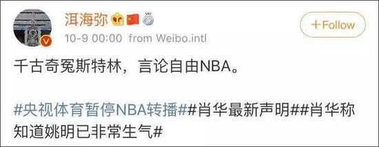 这意味着是肖华所谓的“言论自由”,自有其边界——而数以亿计中国球迷所珍视的价值观,显然不在肖华划定的边界内。在这场突如其来的“莫雷事件”中,肖华因自己站位的选择,已经令NBA感受到经济上将要承担的损失。“毫无疑问,经济方面的损失已经存在”,肖华最新的声明提到,“莫雷的推特已经造成相当严重的后果”。