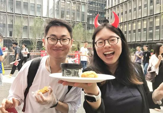 园区里还有很多独立品牌店入驻,包括KFC、星巴克、赛百味、村上一屋、first pizza等,有创意的行政同学们还经常在园区内设置美食快闪店一条街,提供天南海北的各色小吃。
