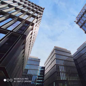 8栋办公楼全部采用不锈钢的外立面,超大单元体幕墙和落地式设计,让对立而望的楼群,充满了高级感和科技范儿。