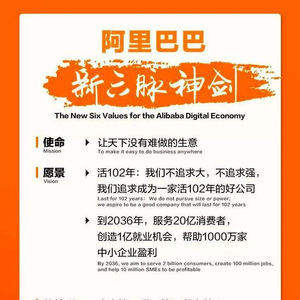 此次“六脉神剑”价值观的更新,也是阿里巴巴围绕使命和愿景所设三大战略的一部分,是成为一家102年的好公司的基础。