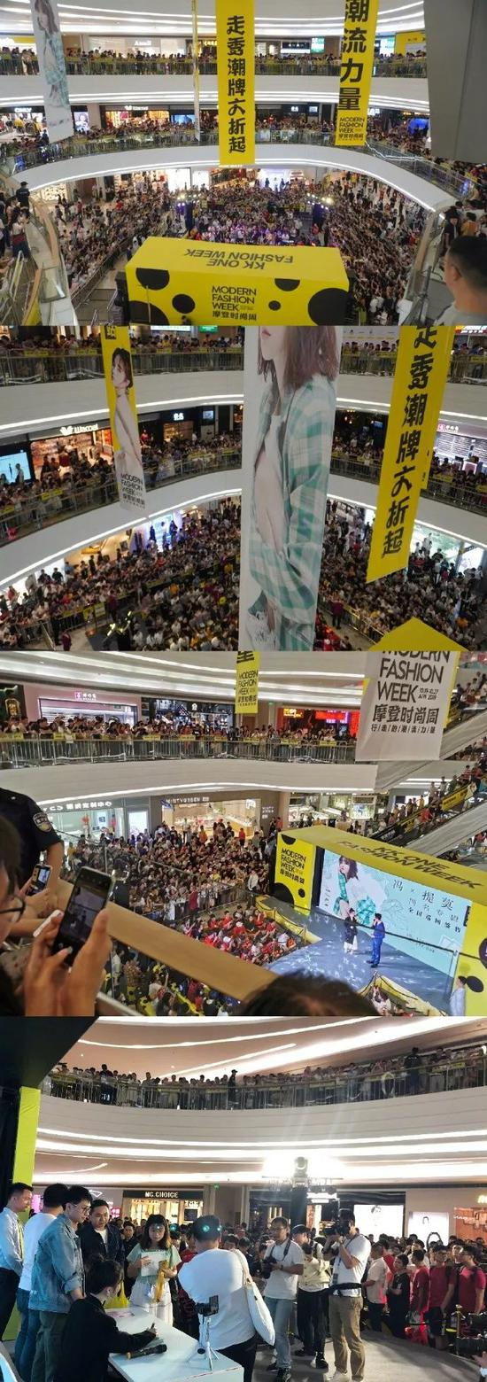 一家商场上下三层被围得水泄不通,透过层层人群,一个娇小的身躯坐在人群中间,她用马克笔迅速签完一张专辑,并露出标志性的萌表情,男粉丝自拍合影后心满意足的离开。