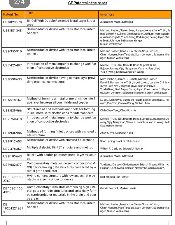 台积电于10月1日正式反击,公告称该公司于2019年9月30日在美国、德国及新加坡三地对格芯提出多项法律诉讼,控告格芯侵犯台积公司40nm、28nm、22nm、14nm、以及12nm等制程之25项专利。