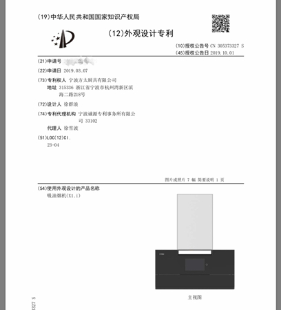 有意思的是,尽管布克有申请外观专利,但《国际金融报》记者查询中国国家专利局网站发现,被指涉嫌抄袭的方太吸油烟机同样也申请了外观专利,专利名称为“吸油烟机(X1.i)”,目前也处于有效状态。据悉,该专利于2019年3月申请,2019年10月获得授权。